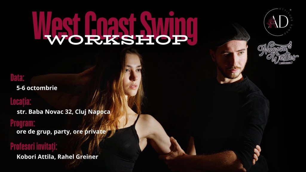 Dacă ești pasionat de dans sau vrei să îți perfecționezi tehnica, te invităm la un eveniment de neratat! Attitude Dance Studio și Napoca Westies Dance School organizează un workshop de West Coast Swing, cu doi dintre cei mai buni dansatori ai Europei!